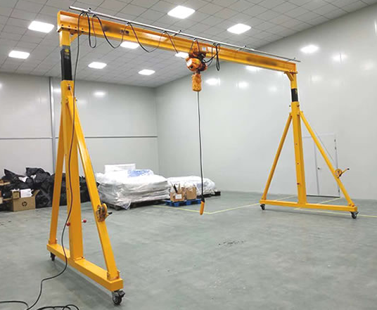 所以說小型龍門吊的調節高度功能并不與電動葫蘆升降沖突,一臺小型龍門吊便輕松的解決了兩臺普通小型龍門吊才能解決的問題。