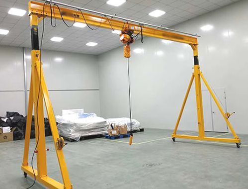 小型龍門吊與環鏈電動葫蘆搭配使用能夠快速實現重物的短距離移動吊運作業,大大提高工作效率。